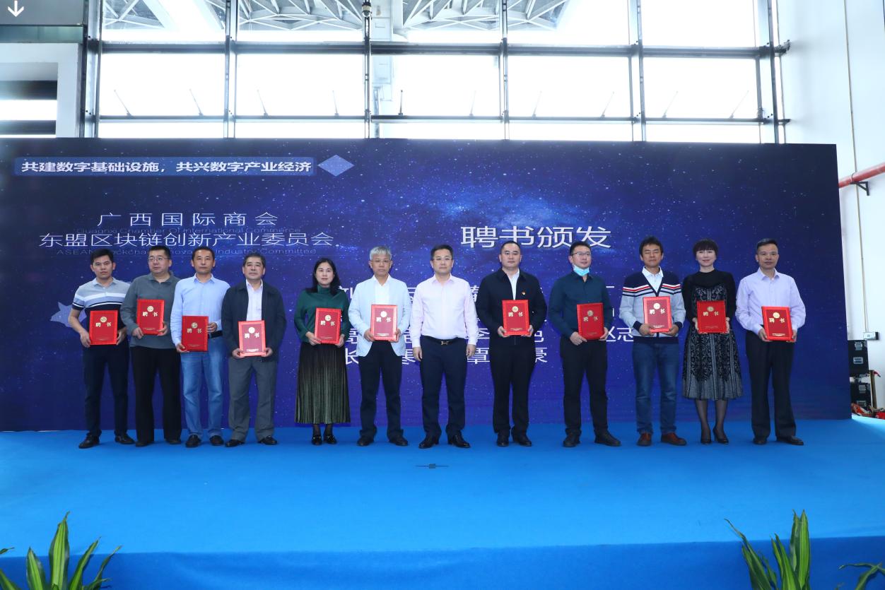 (圖6廣西國際商會東盟區(qū)塊鏈產業(yè)委員會為與會專家組成員頒發(fā)專家聘任聘書1)