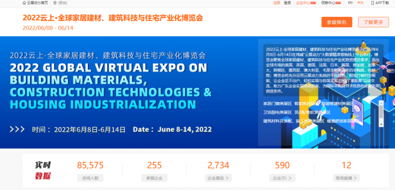作為廣東省“粵貿全球”系列展會之一的2022云上·全球家居建材、建筑科技與住宅產業(yè)化博覽會,以打造“粵貿全球”品牌為己任,開展首日聚集255家家居建材、建筑科技與住宅企業(yè),全球85517人次(數(shù)據(jù)統(tǒng)計截止至6.8下午17時)云上實時觀展,集中展示智能家居、家居門窗、陶瓷、衛(wèi)浴廚電、建筑材料、定制家居、家居配套服務等領域企業(yè)的尖端技術、熱門產品、解決方案,全方位展示“粵企”實力,多角度體現(xiàn)“粵貨”魅力。